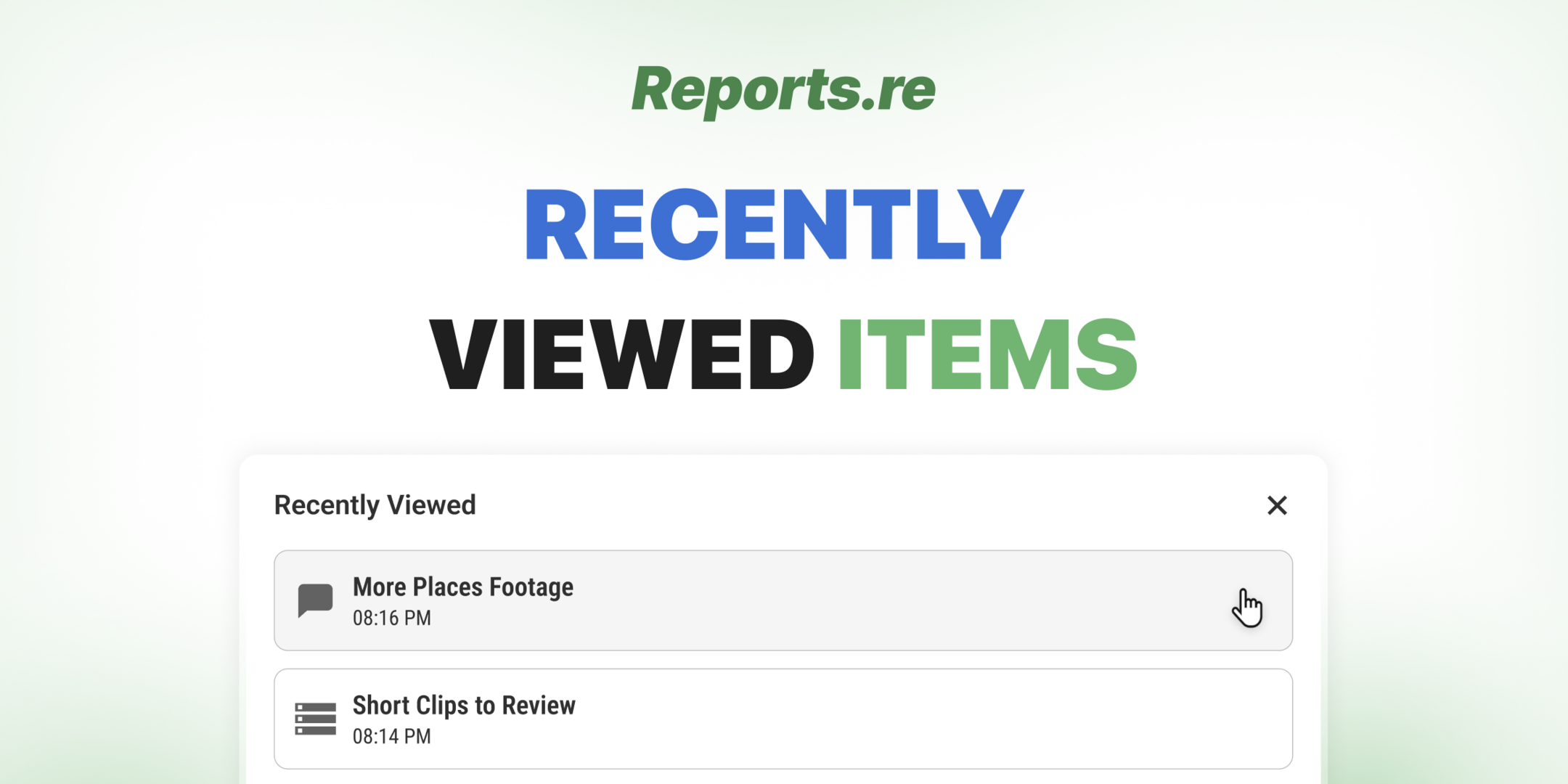 Recently Viewed Items in Reports.re — Quickly access items you opened in one click When working in Reports.re, you often open many different items such as cards, tasks, files, and chats. During a project, it is common to return to the same items multiple times. Without quick access, you may need to search for them again or keep several browser tabs open. Recently Viewed Items solves this by keeping a list of the items you opened most recently. This allows you to return to them instantly with a single click.