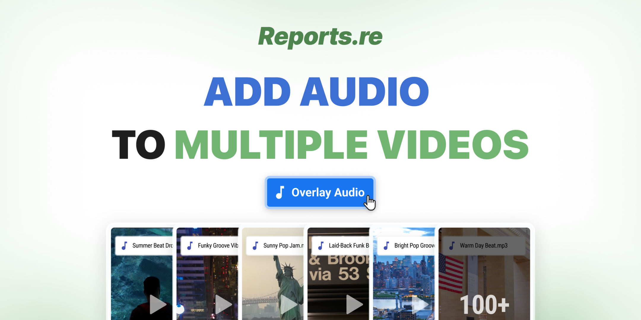 Batch Audio Overlay in Reports.re — Update Audio Across Multiple Videos Updating audio across multiple videos can take a lot of time if done one by one. In Reports.re, the Batch Audio Overlay feature allows you to handle this process in a single workflow. With just a few steps, you can apply audio changes across many videos at once, making large-scale editing much more efficient.