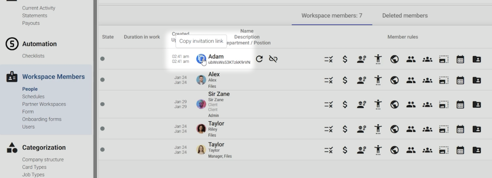 - The user will now appear in the workspace member list, but they aren’t invited yet.