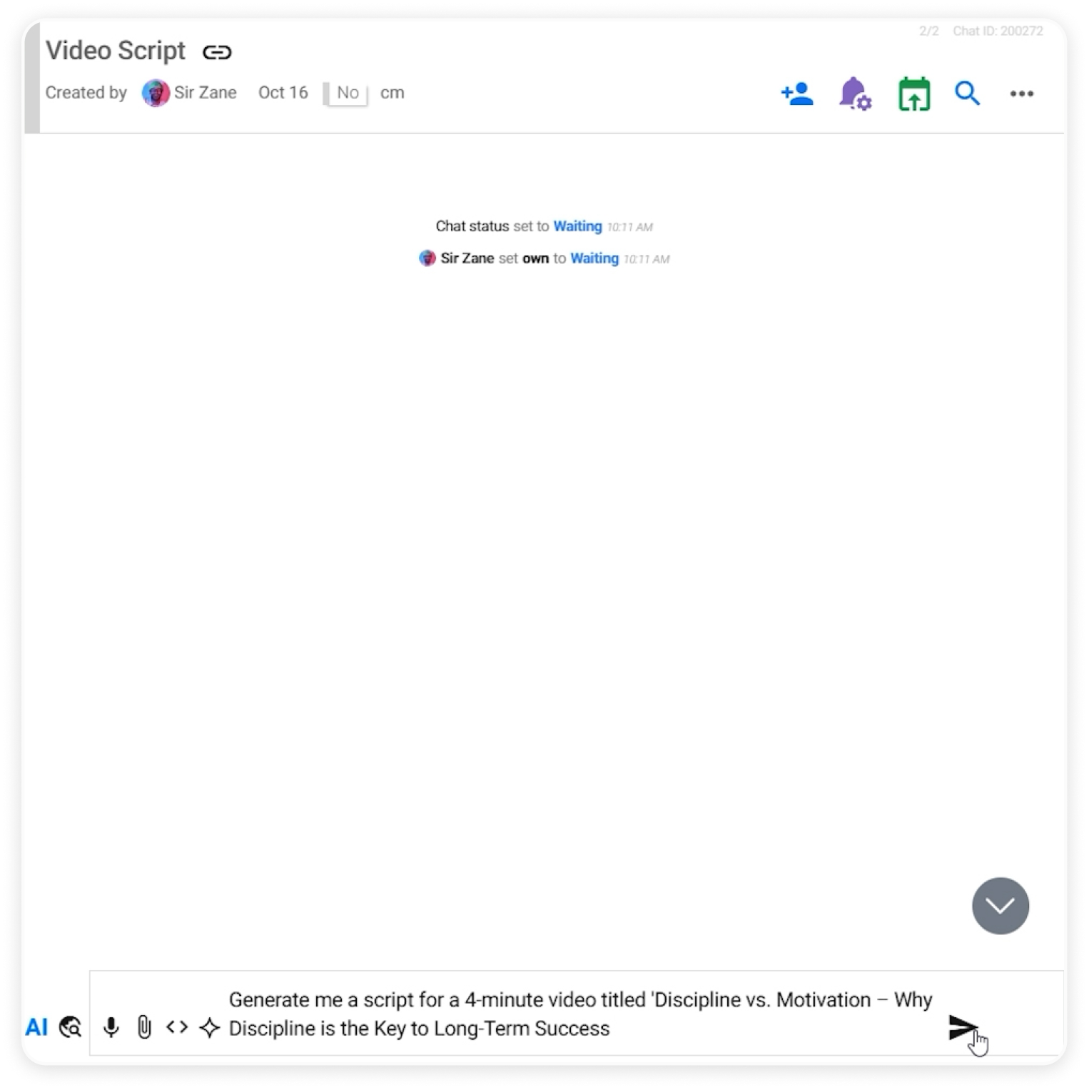When preparing a video, you can begin by opening a chat and activating the AI assistant.