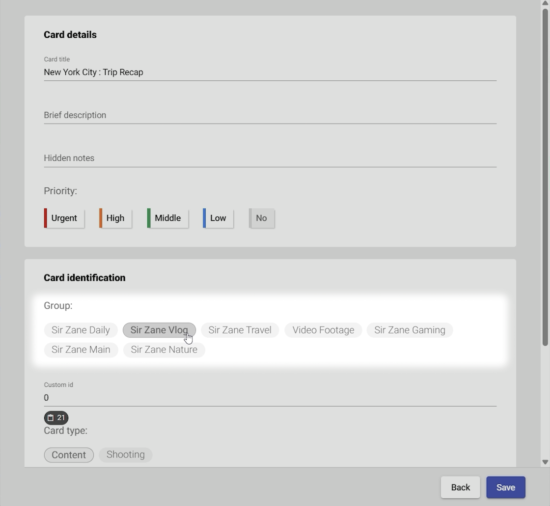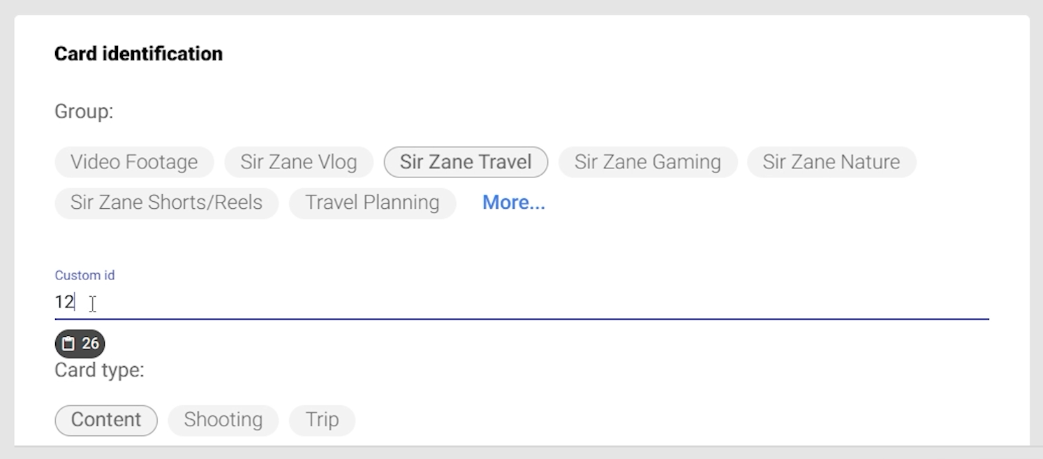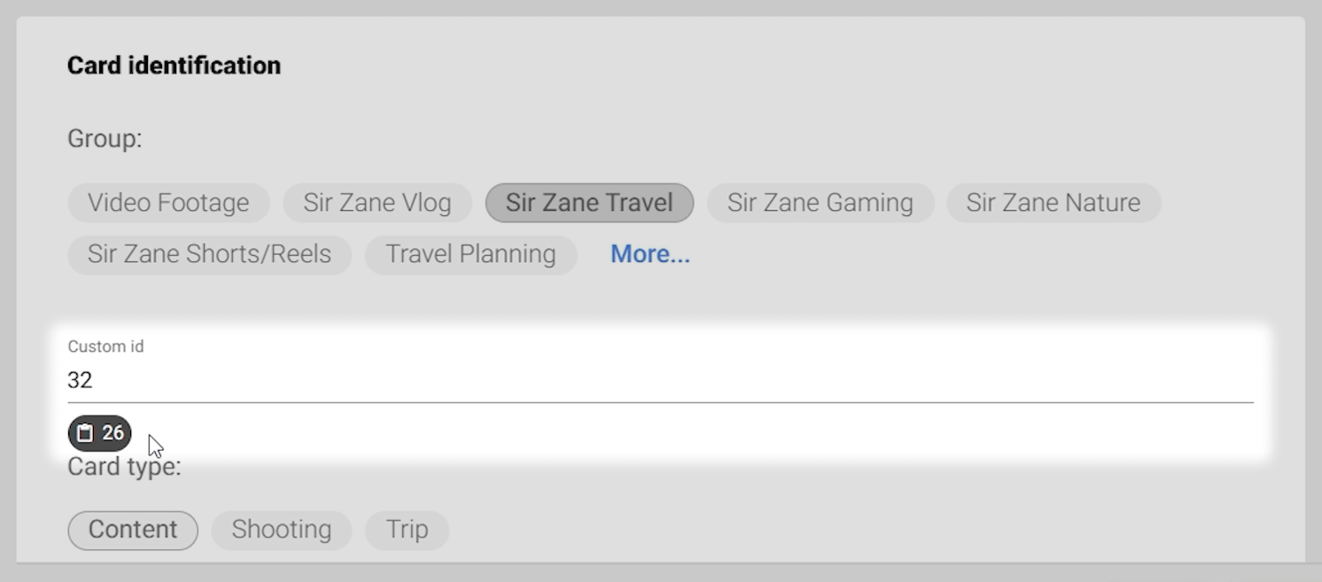 When you assign or change a group, the card's custom ID will automatically update to the next number in that group—keeping everything orderly and easy to track. You can also change the suggested ID if needed.