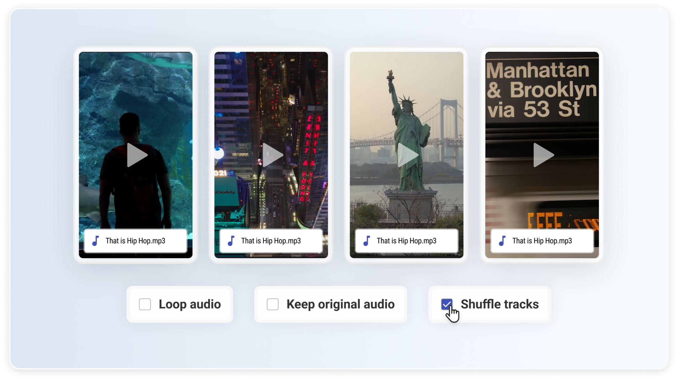 - Shuffle different audio tracks across videos
