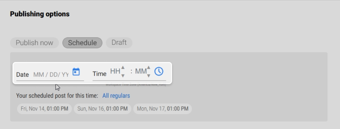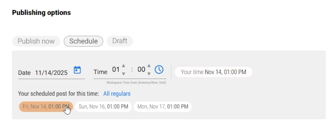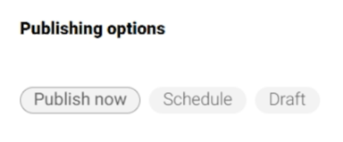 - You can choose the publishing method: Publish Now, Schedule for Later, or Save as Draft.