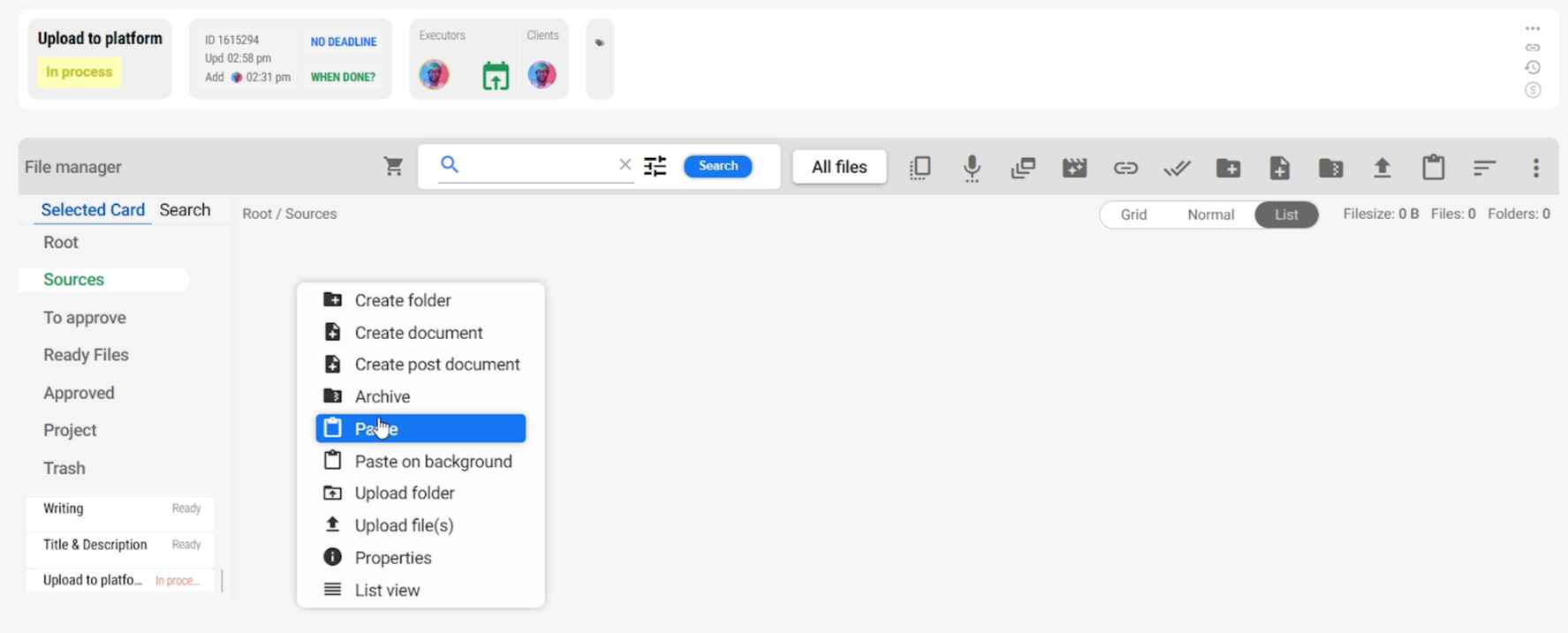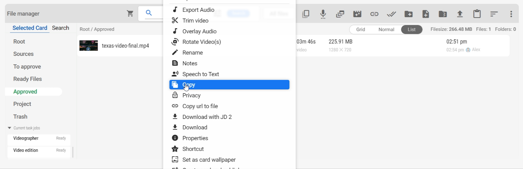 - Right-click and copy completed files from their respective tasks.