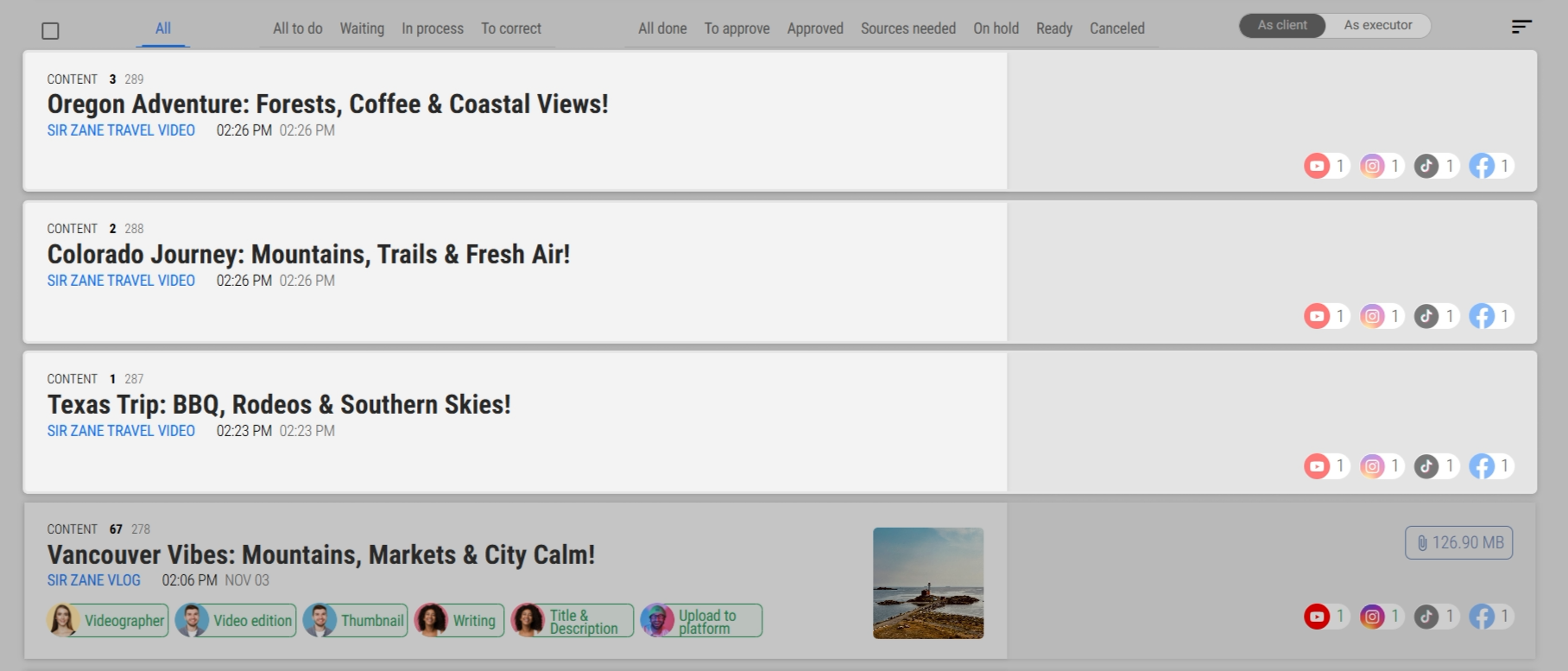 Once your cards are created for every planned video, you’re ready to build your workflow inside each card.