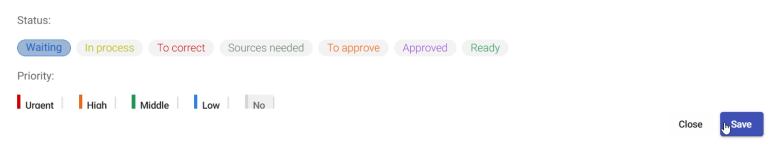 - Set the task status, such as Waiting.