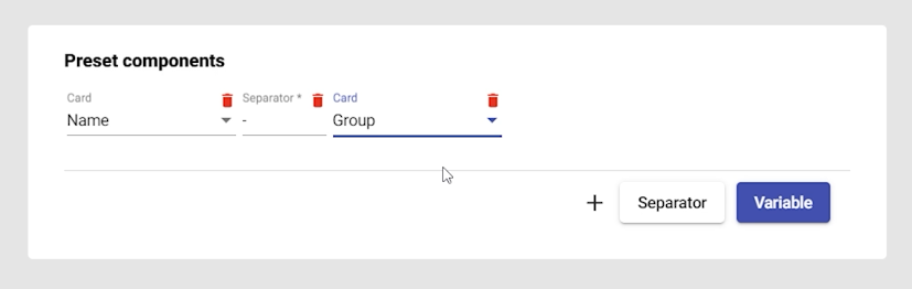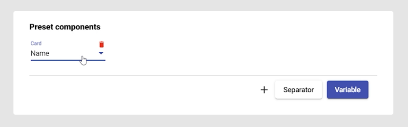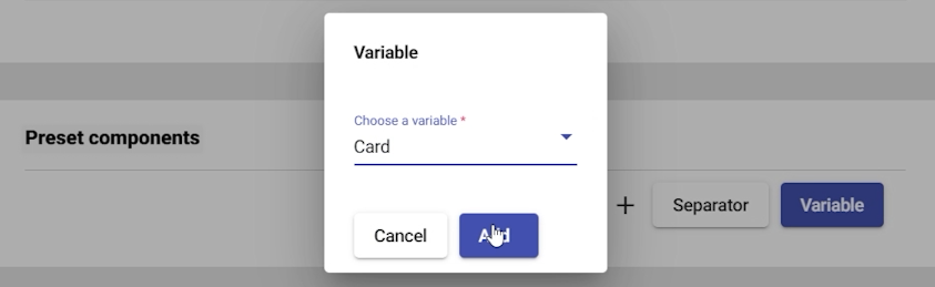 - Choose a variable to add to the preset (e.g., card).