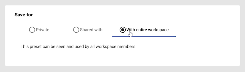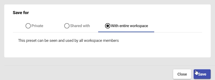 Decide the visibility and who to save your preset for: