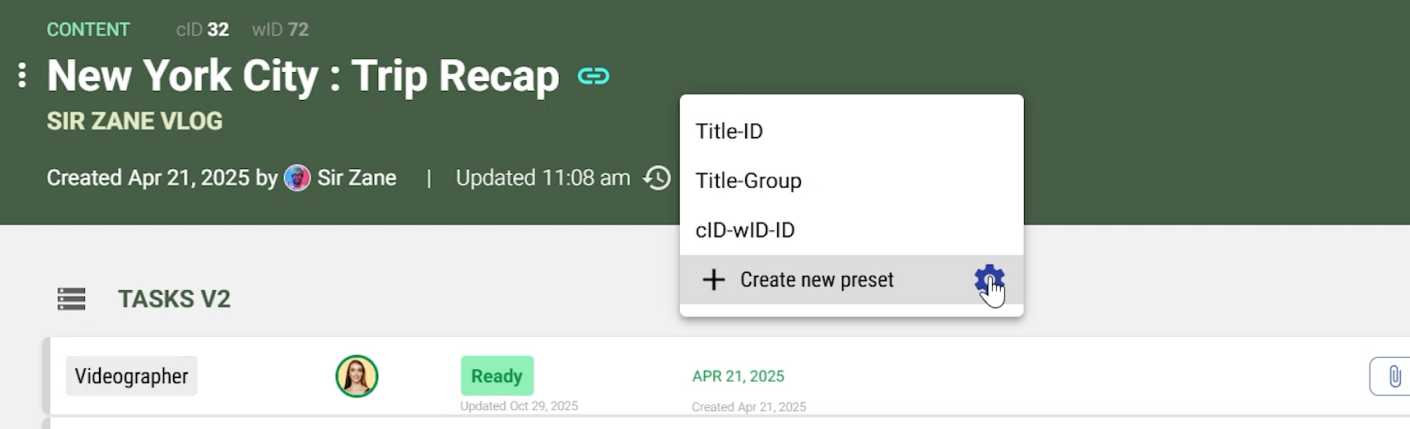 - Click the settings icon next to your preset.