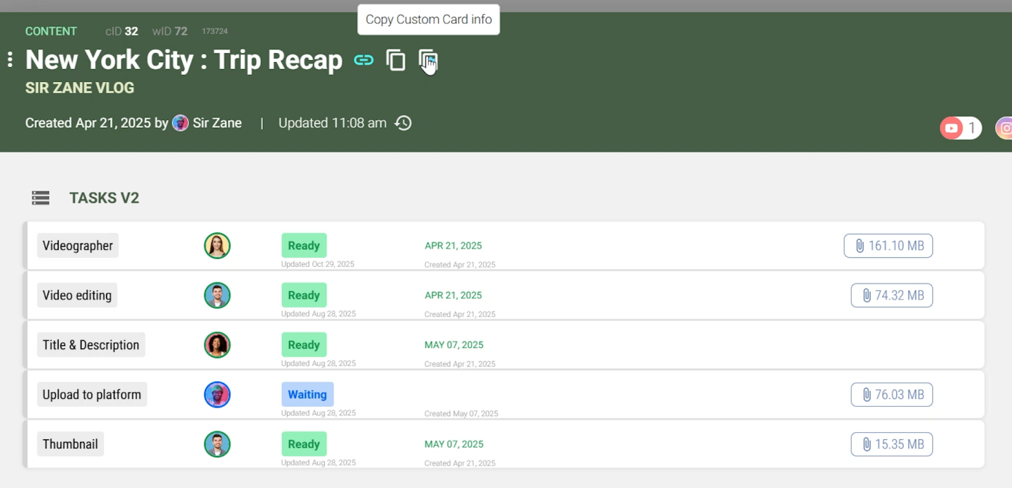 If you often copy specific details from a card, like its title, group, or ID, you can save time by creating a custom copy preset. This lets you copy only the information you need, formatted the way you want. Once saved, your presets can be reused anytime.