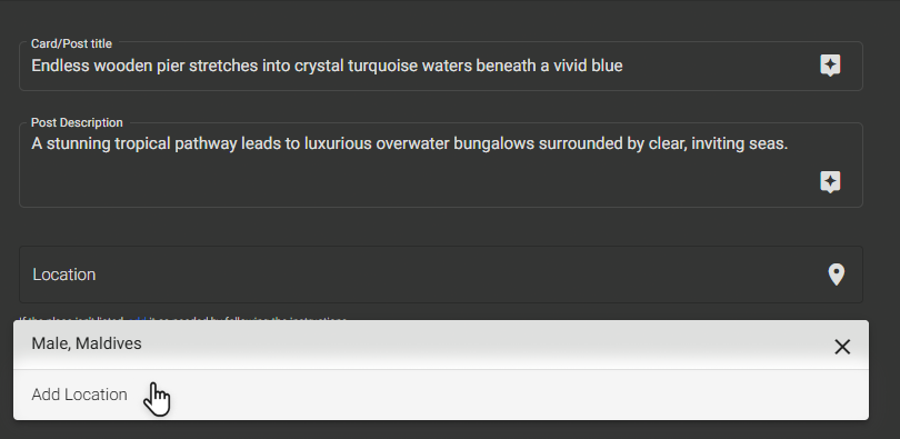 When publishing a post, you can customize not only the title and description but also the geo location which helps your content appear more relevant to local audiences.