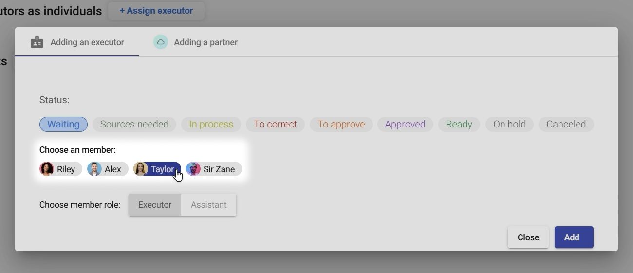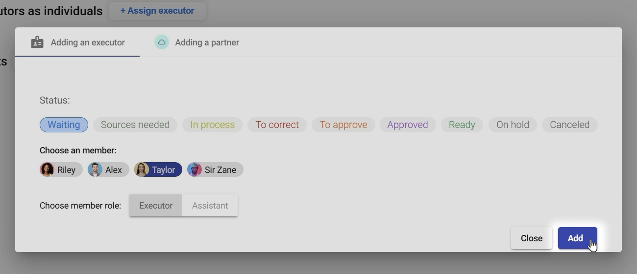- Click "Assign Executor" again and repeat the selection process.