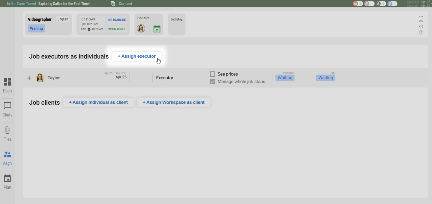 - Click "Assign Executor".