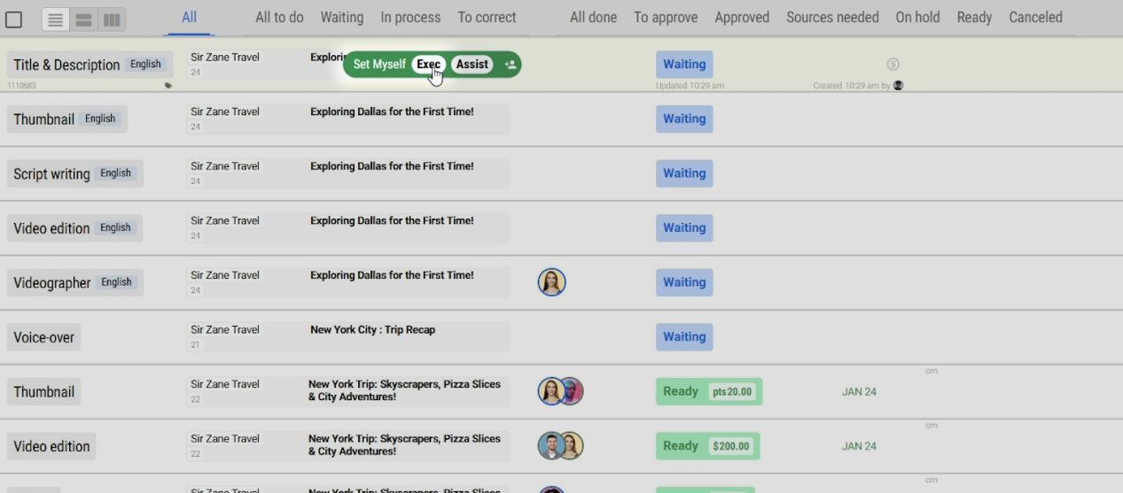 - Hover to the green "Assign" icon.