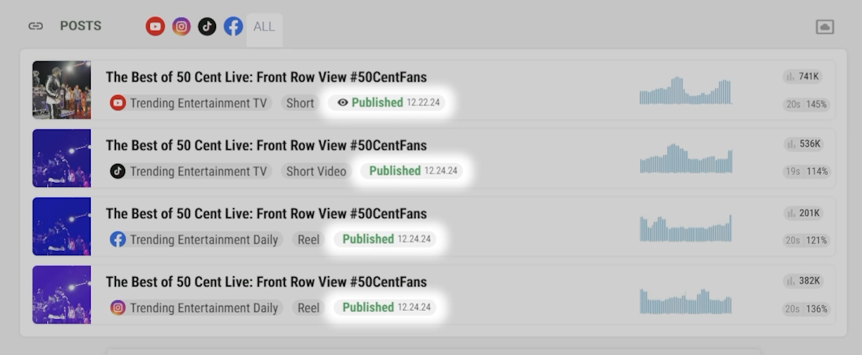 - Identify all platforms where the post was published.
