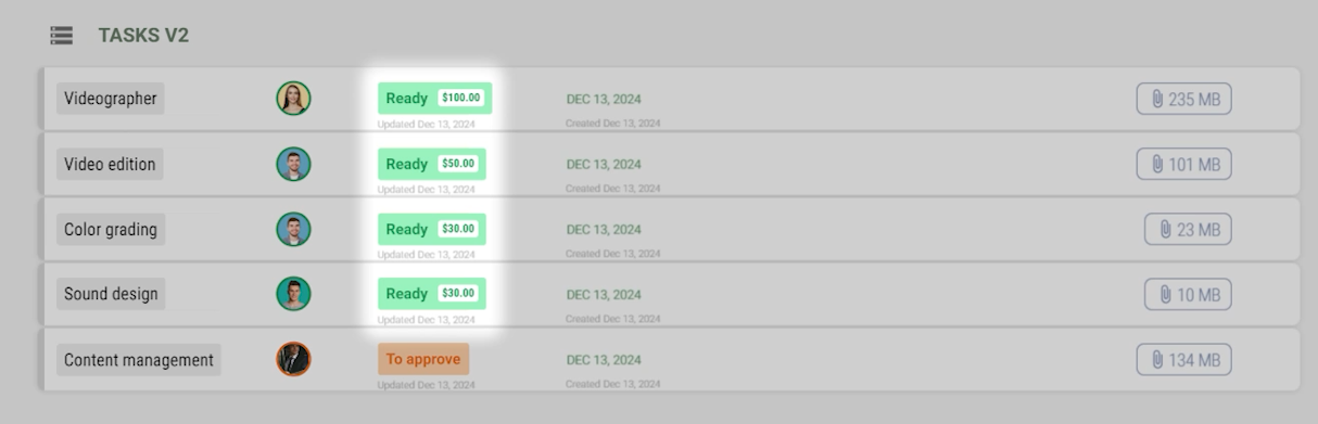 - Status and costs associated with each task.