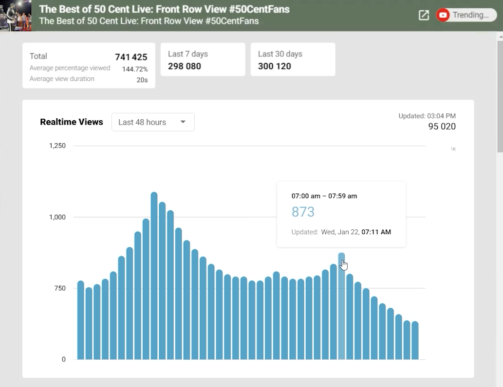 - Reports.re shows real-time view counts updated hourly.