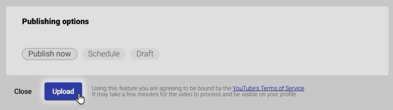- Click "Upload" to publish the content.