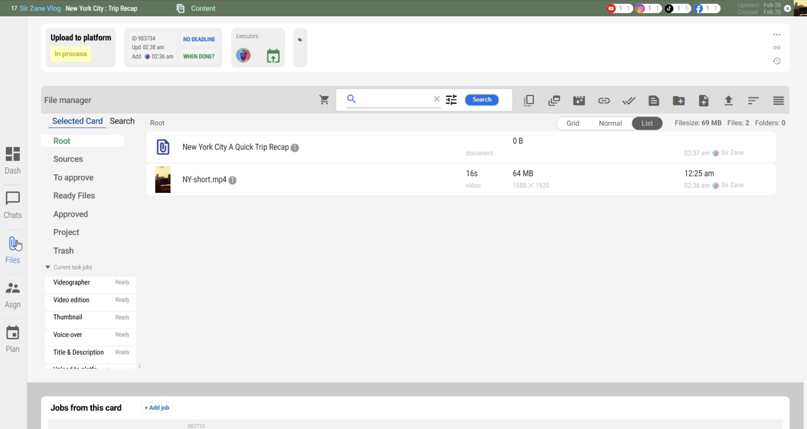 - In the Files section, locate your video file.
