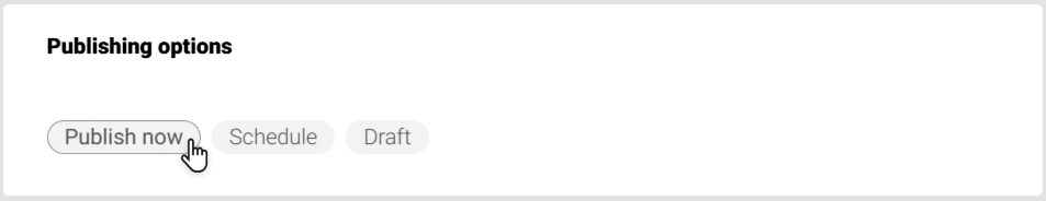 - Publish now: Publishes the content right away to the selected platform.