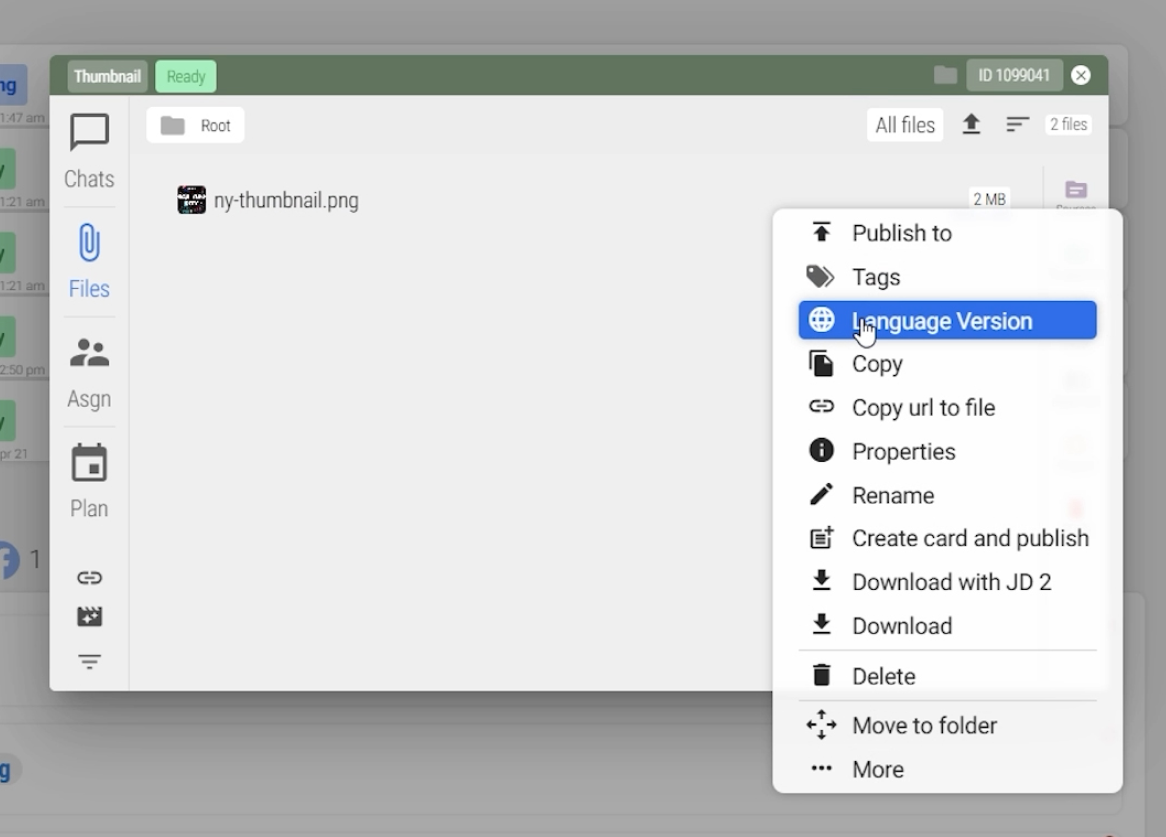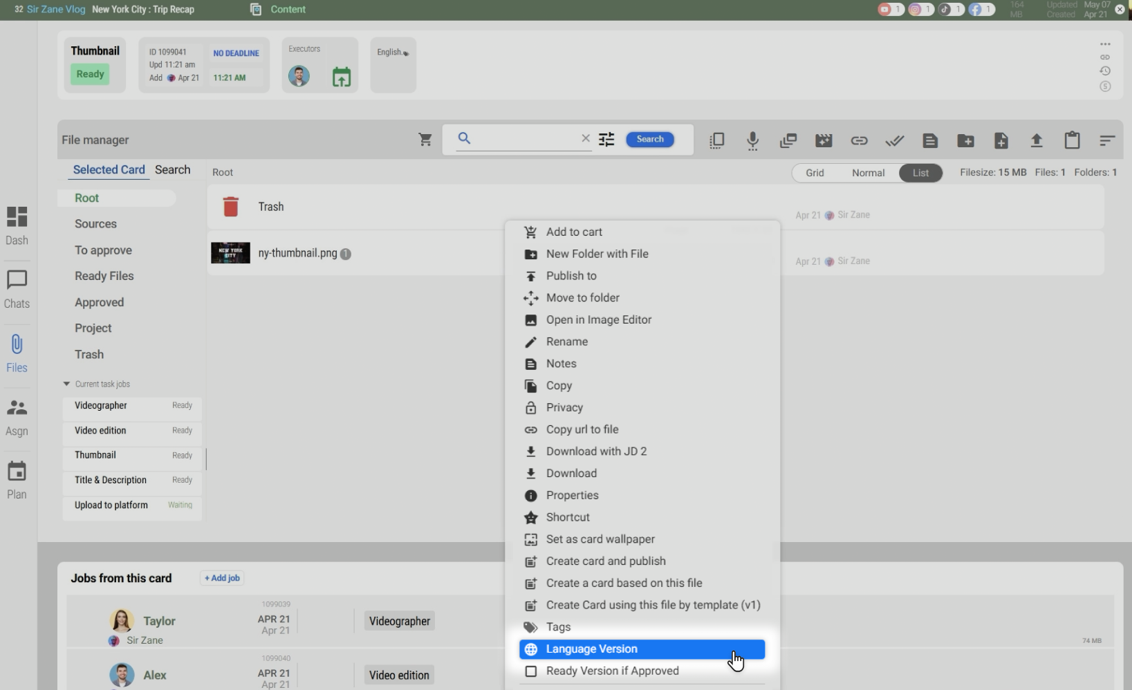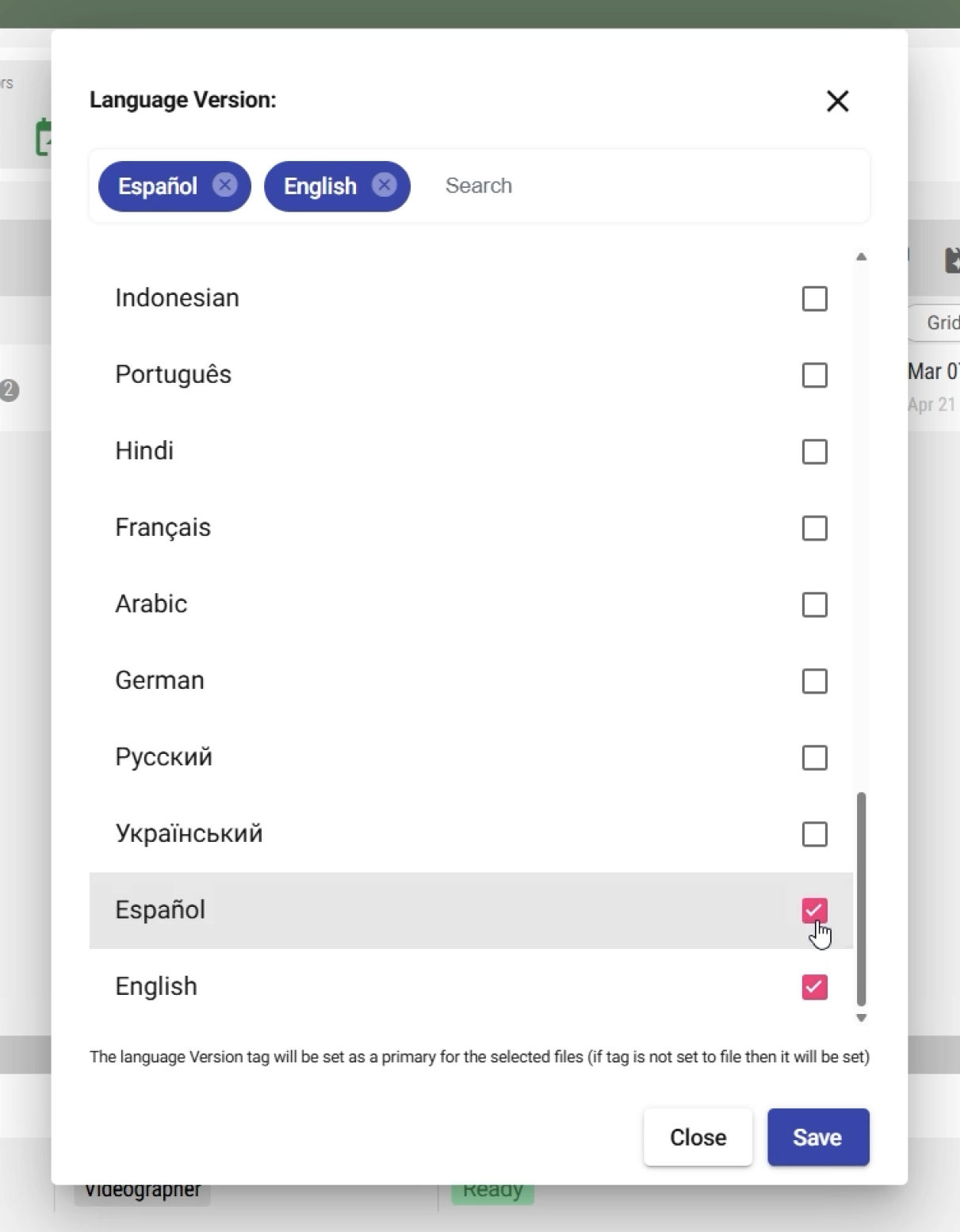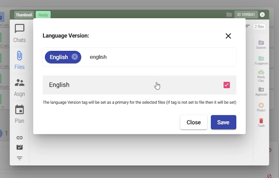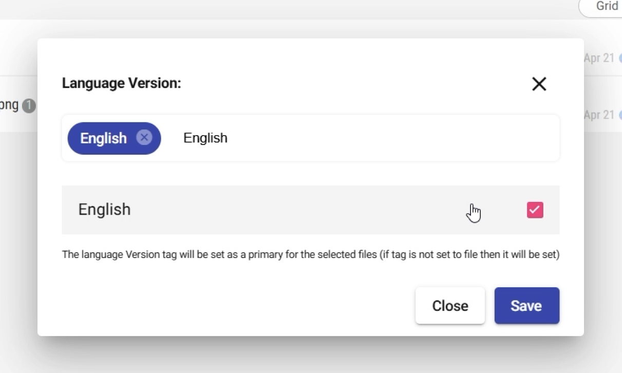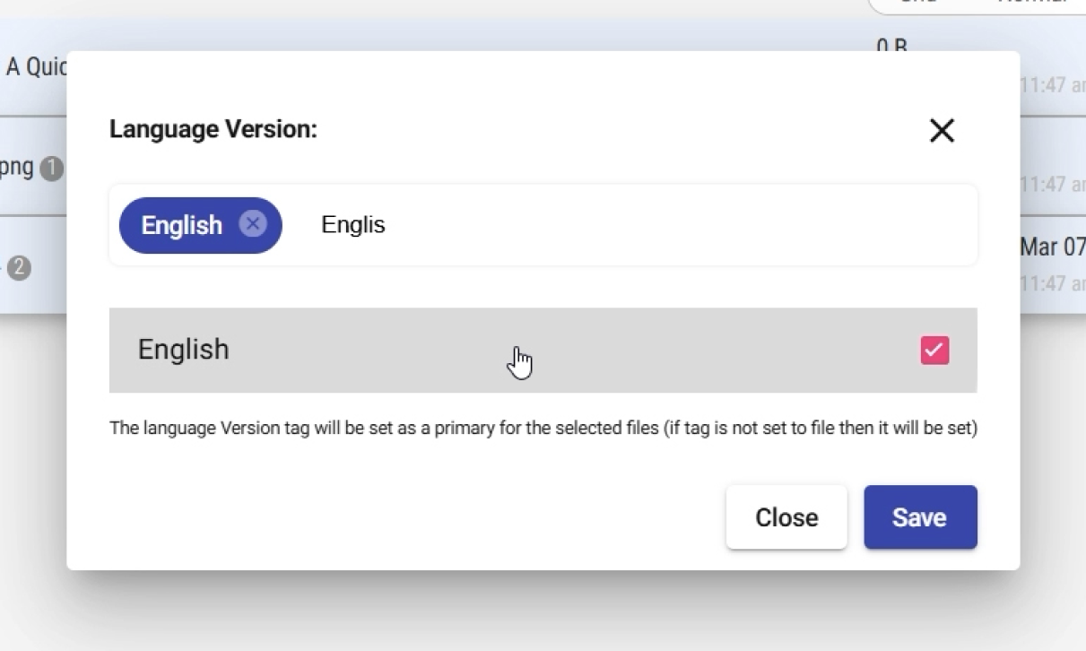 In Reports.re, you can assign specific language versions to your files. This helps teams stay organized—especially when working with multilingual content—and makes it easier to search and manage files efficiently.
