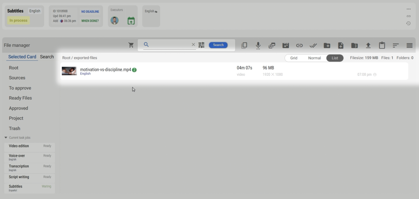 - After processing, the file will appear in the "exported-files" folder in the same job.