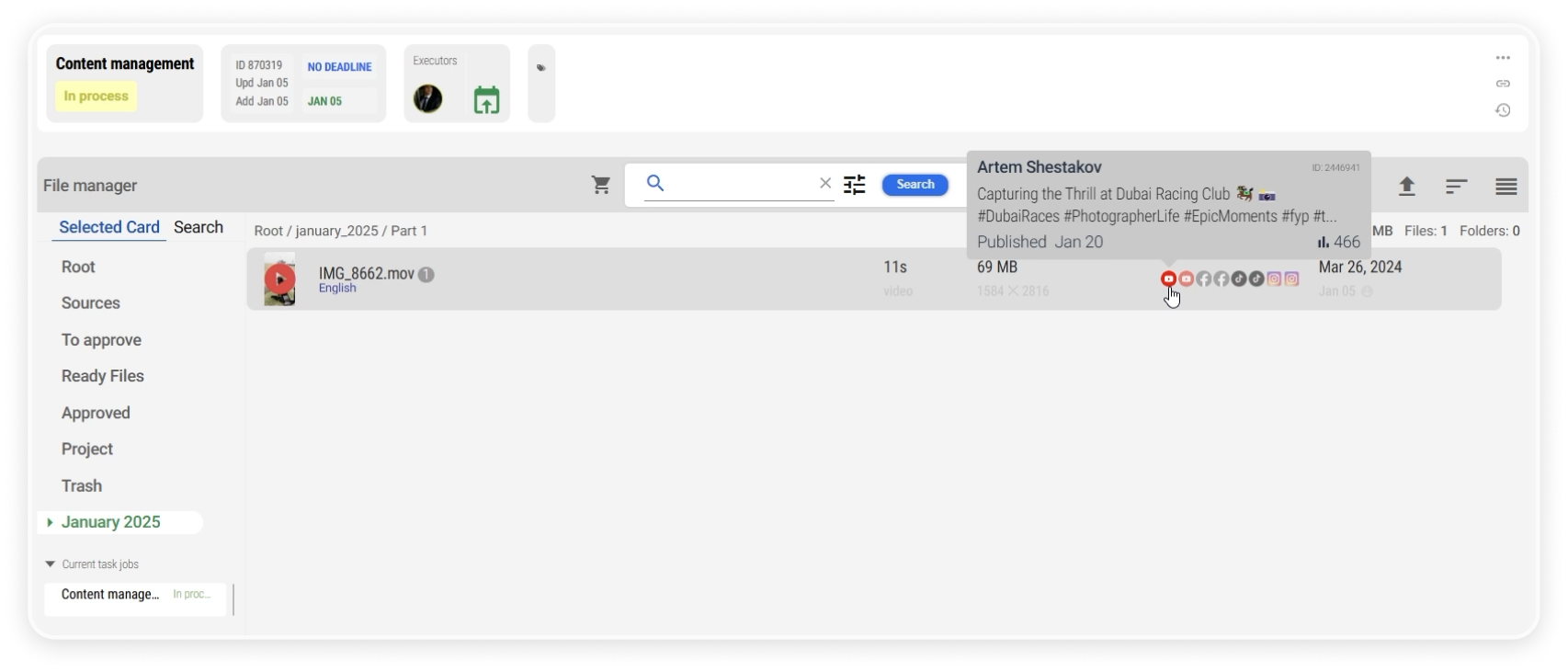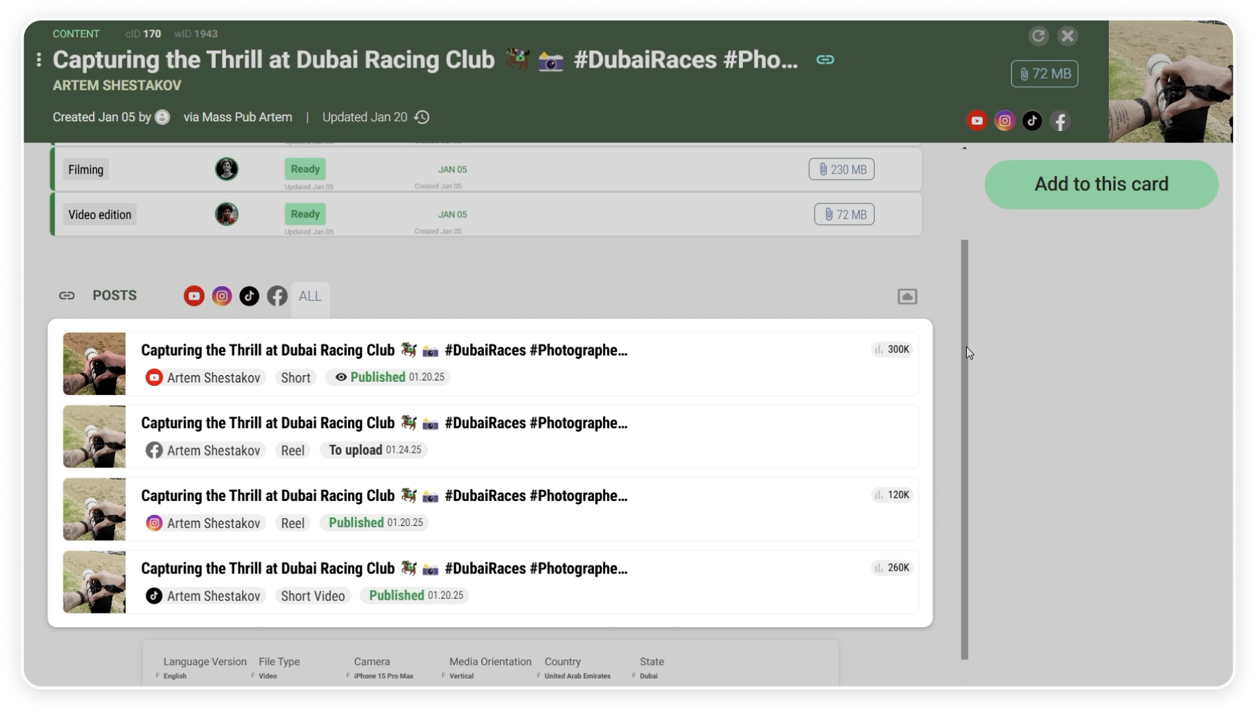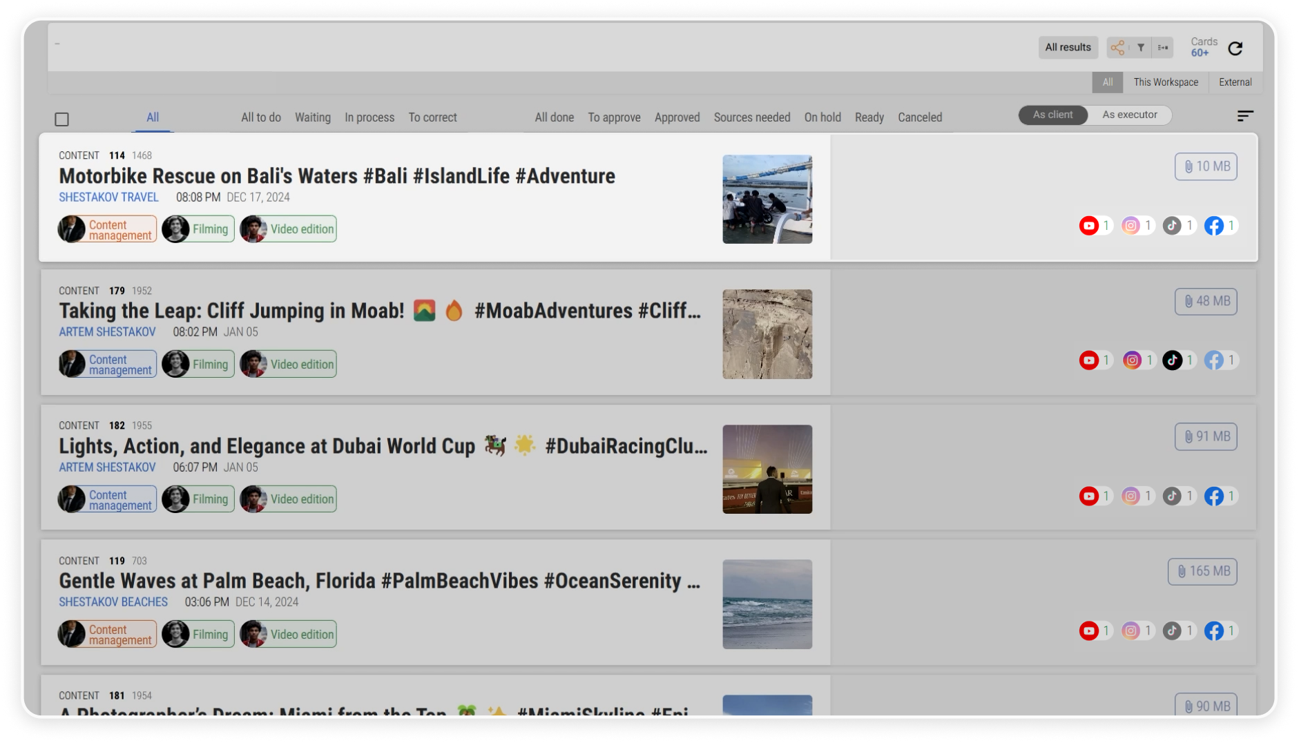 With a clear card-based system, you can track every video and photo without switching between platforms.