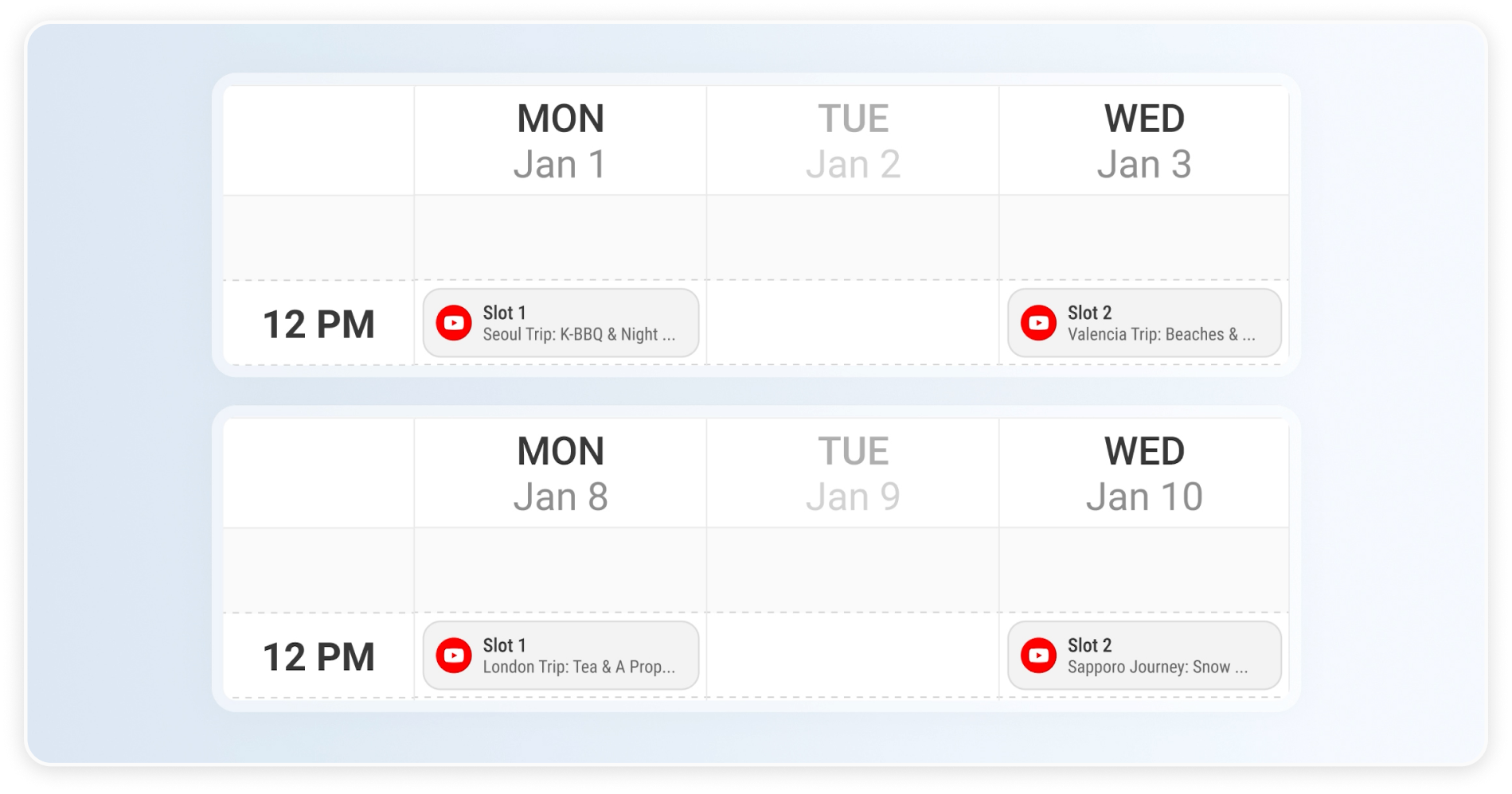 These time slots act as the publishing schedule for your content.