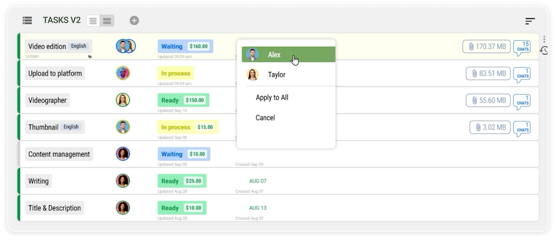 You can assign a status to a specific executor or apply the same status to all executors working on the task. This flexibility helps keep everyone aligned while still allowing individuals to manage their own progress.