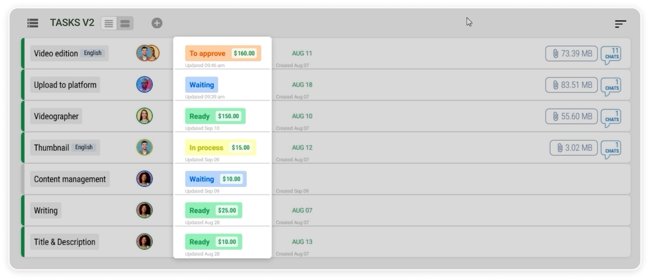 With clear status indicators, you and your team can quickly understand the current state of work and stay aligned throughout the project.