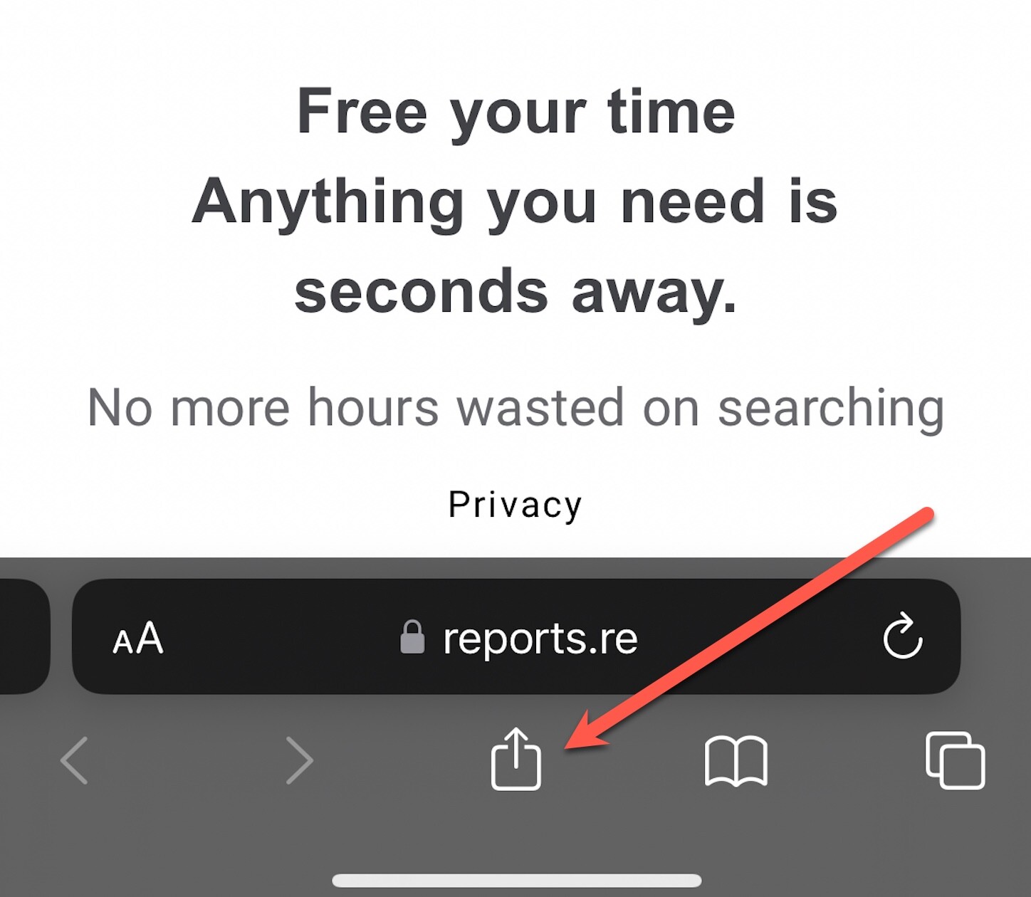 1.In the Safari browser, tap the “Share” icon.