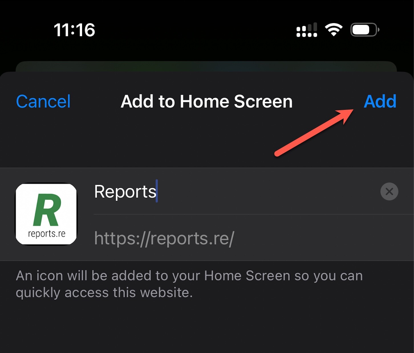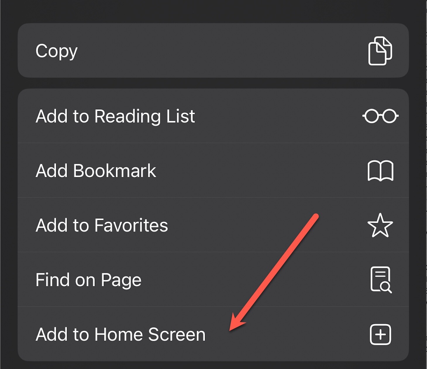 2. In the menu that appears, select “Add to Home Screen.”