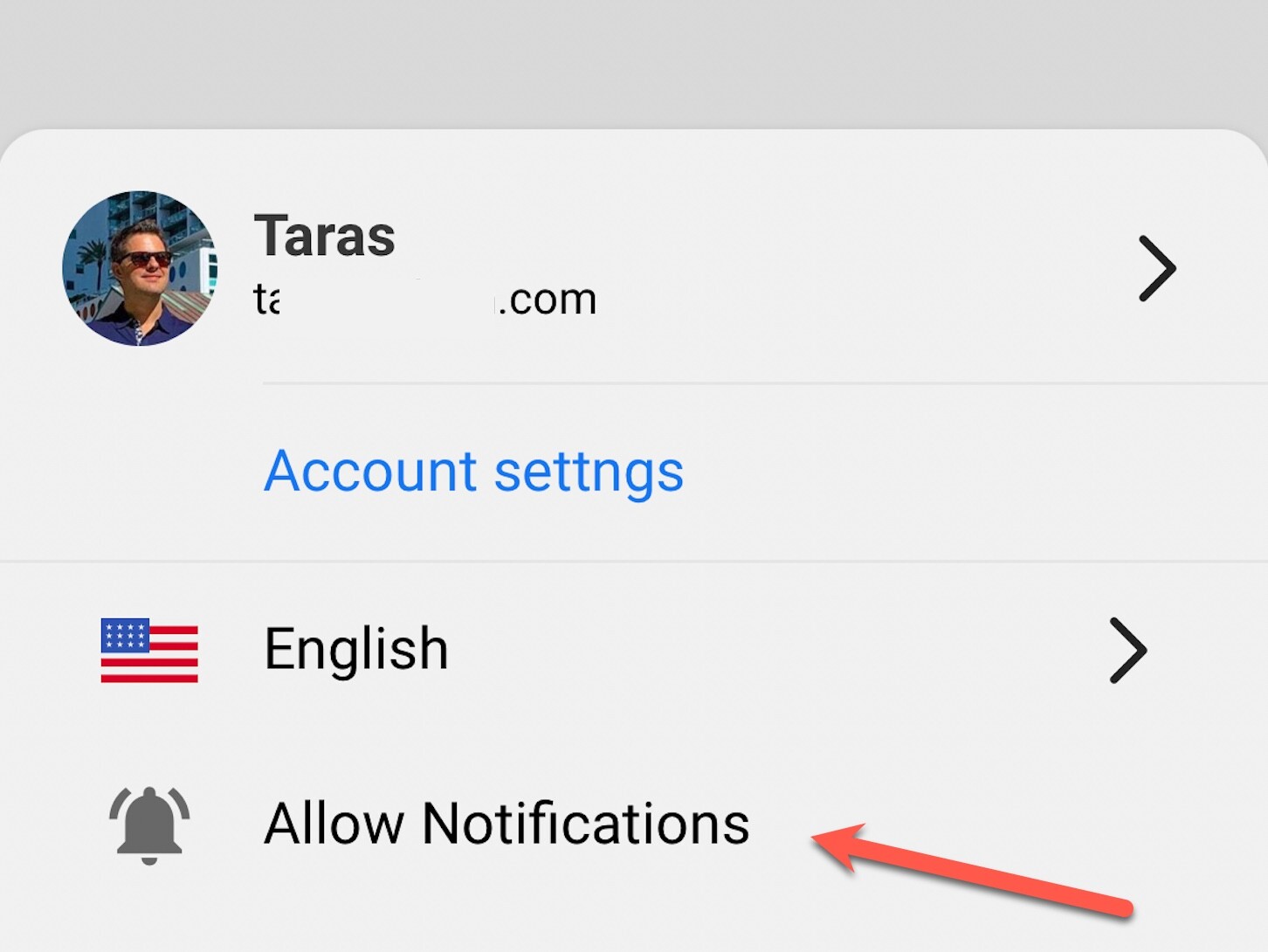 6. Select the “Allow Notifications” option.
