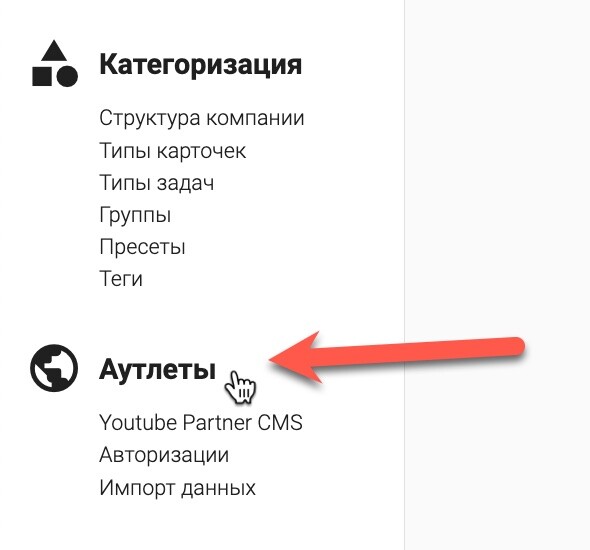 В этом же разделе списка аутлетов необходимо выполнить следующие действия: