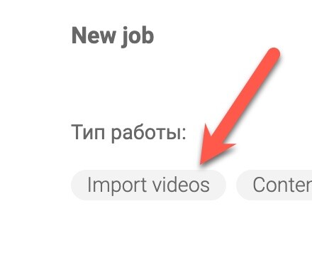 Мы рекомендуем использовать тип работы "Import videos", в которые система поместит импортированные файлы. (Но вы можете использовать любые другие работы по своему усмотрению)