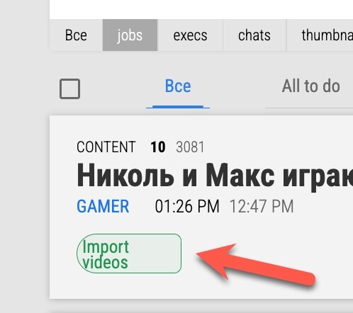 5.1 На этом шаге повторить все те же действия, что и в пунктах 4.1 и 4.2 убедившись, что во всех карточках указаны работы Import videos (как на скриншоте)