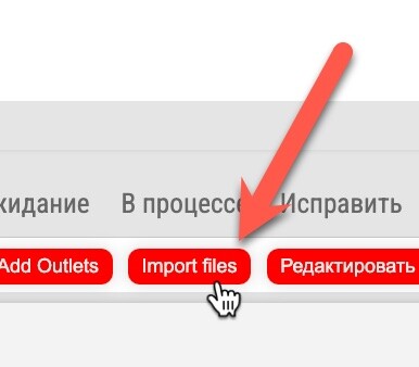 2.1 Нажать на иконку открытия интерфейса импорта списка постов аутлета