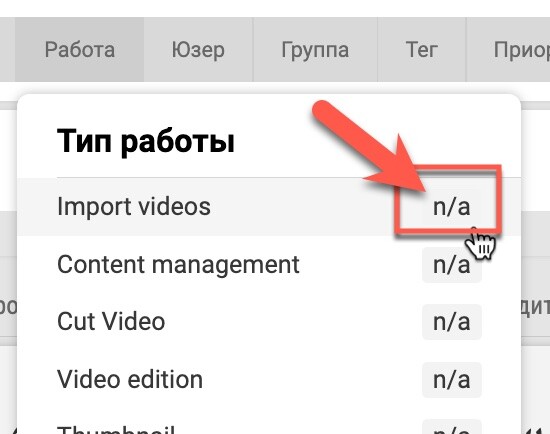 4.0.1 ВАЖНО! В отфильтрованных карточках у вас могут быть уже эти работы, в данном случае работы Import videos (например, потому что вы уже ранее делали импорт).